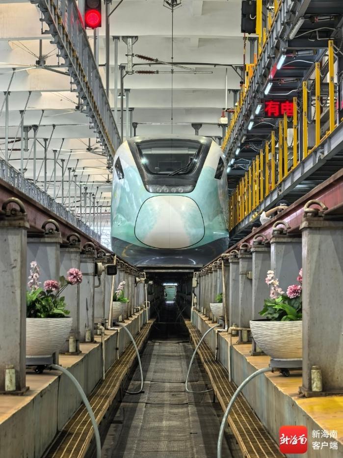 然而,要确保这条线路的安全运行,面临着诸多挑战。海口机辆轮渡段海口城际动车所作为这条线路动车组的“守护者”,以“零故障”出库为标准,用科技和匠心守护着每一列动车组的安全。